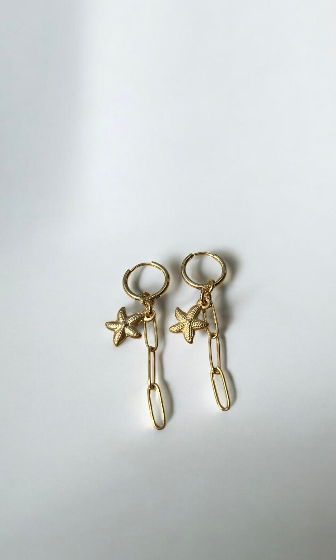 Diese eleganten Creolen aus rostfreiem Edelstahl bestechen durch ihren zarten Seestern-Anhänger.